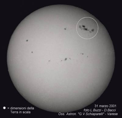Fotoosservazione della grande macchia solare di Aprile 2001