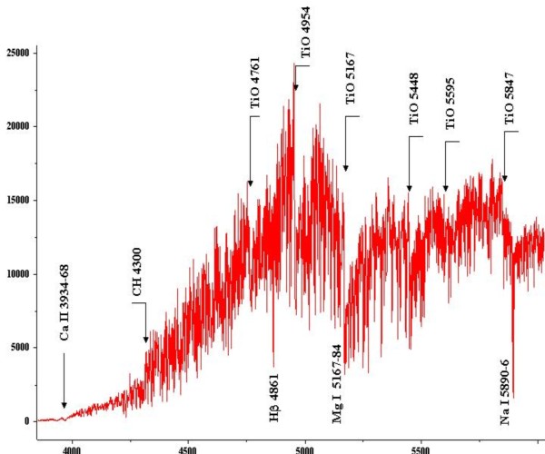 Figura 1: Spettro di Betelgeuse ( a Ori - M2 Iab)