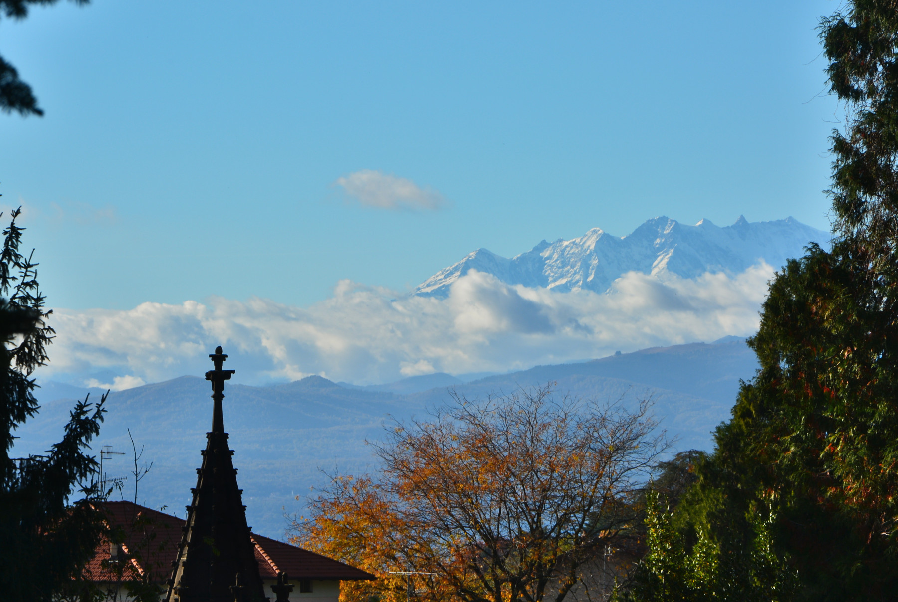 Dal giorno 6 al 18 quest'anno lungo dominio anticiclonico con clima relativamente mite che ha rallentato la colorazione autunnale delle foglie, con castagni verdeggianti fino a fine mese. Brume e foschie sono invece già tipiche del periodo autunnale. (foto P. Valisa - 9 ottobre 2025 da Masnago verso il Sacro Monte di Varese)